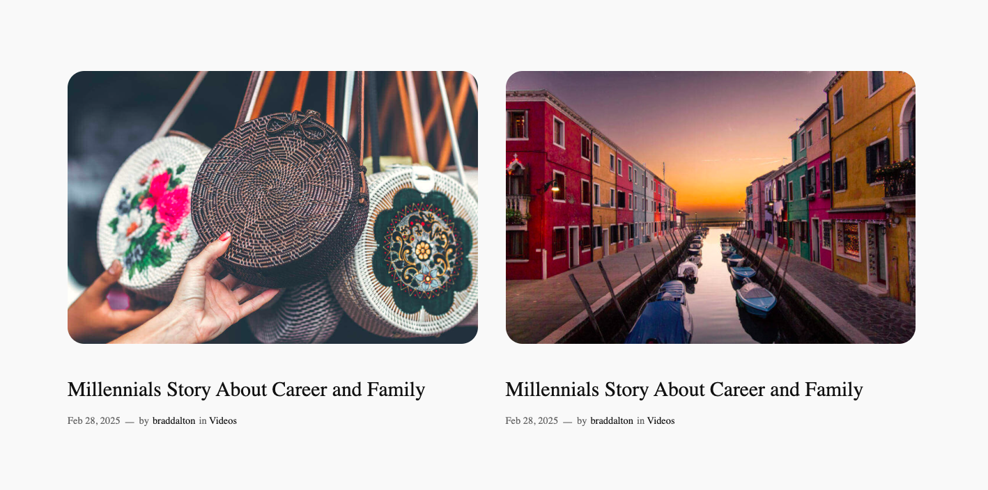 In this example, we’ll create a 2 column posts template you can use in any block theme for use with all terms associated to your taxonomy or specific terms. In this example, we’ll create a custom template for the category taxonomy for the videos term.