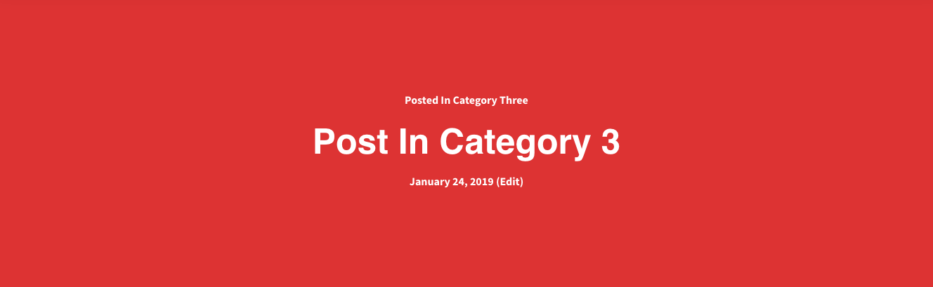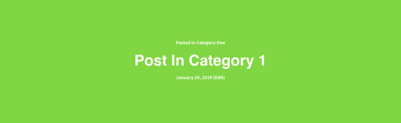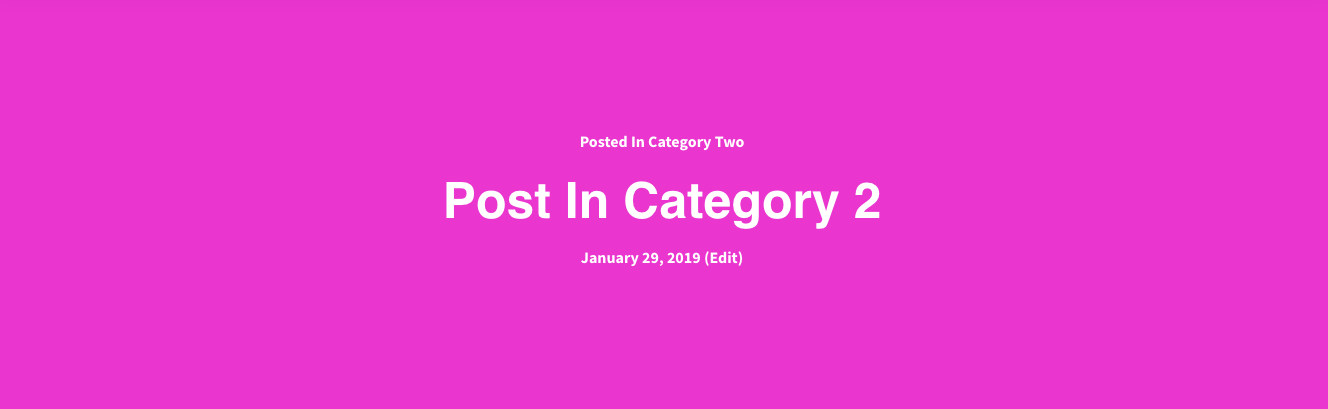 Shows the entry header repositioned after the header with a full width background color for posts in each category set using the color picker on each Edit Category screen.