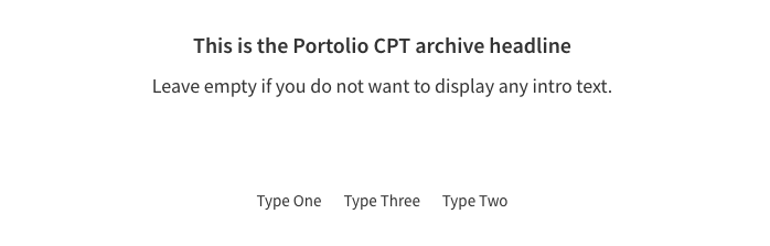 Shows the custom taxonomy terms added to the menu before the loop on the Portfolio CPT archive page in the Genesis Sample child theme by StudioPress.