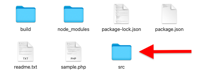 Note : Do not touch the files inside the build or node modules folder. You should only edit the files inside the src ( source ) folder and main .php file file which in this case is named sample.php.