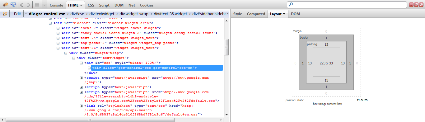 Using Firebug To Find Layout Sizes