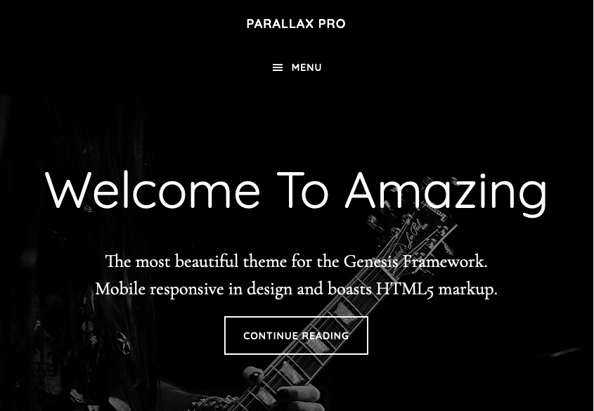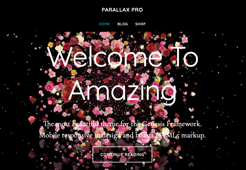 Shows the self hosted MP4 video displaying on desktops behind the home section 1 widget area in Parallax Pro and the background image replacing the video at the same time the Genesis responsive menu is activated.