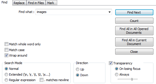 You can easily find this section by opening the file using Notepad++ and entering image in the search function.