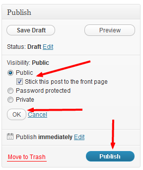 Thats it, your post will now be displayed at the top of all your other posts regardless of whether you use your front page or a sub directory to display your posts.