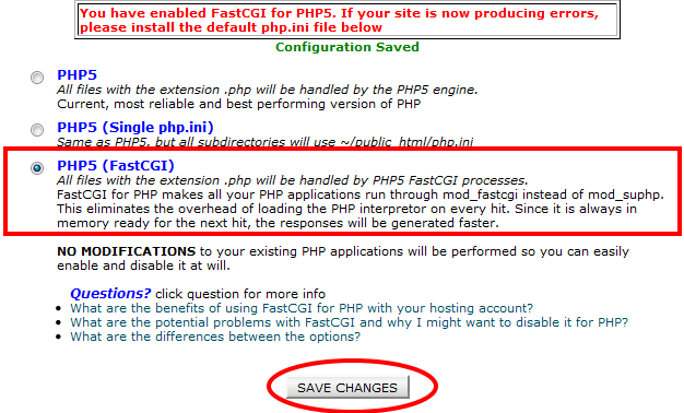 You may also choose to activate Fast CGI by checking the Fast CGI checkbox and then clicking Save. This will help reduce the amount of resources your site uses and optimize it for better performance.