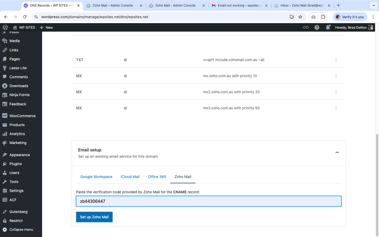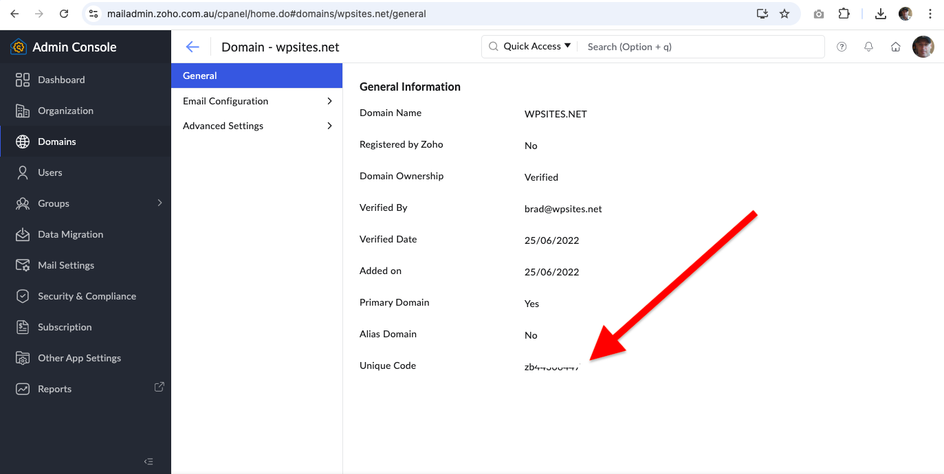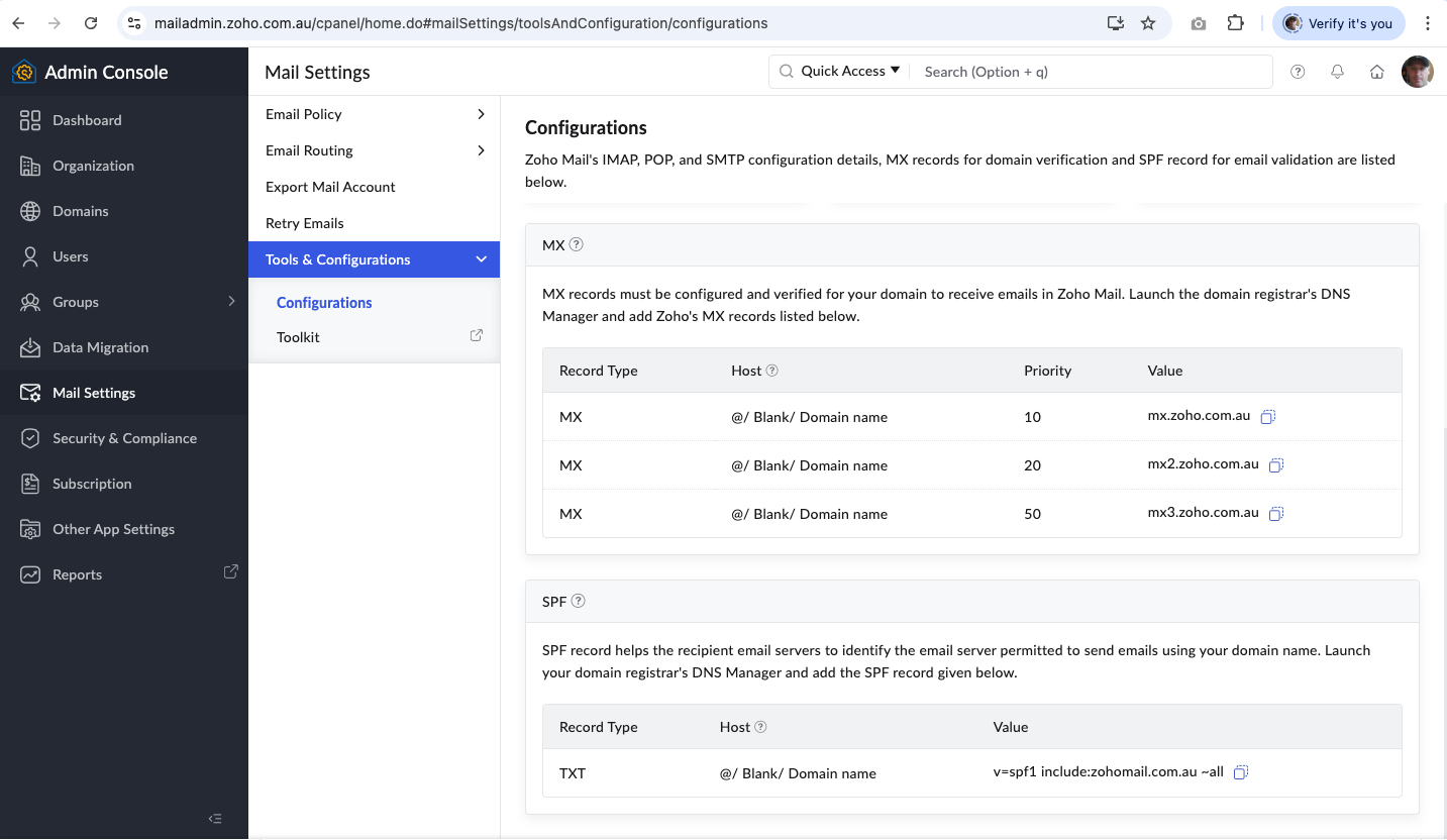 Remember to check your MX records after Email Setup verification to make sure the Zoho extension is correct.