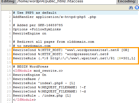 This is the exact code which he placed in the htaccess file in my public_html root directory of my old site.