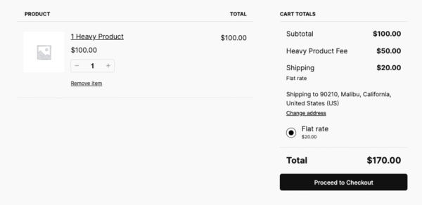 This tutorial provides 3 different ways to make your customers pay more for specific products in WooCommerce. In this example, we target a product which is heavy. To add fees based on specific products added to cart you can :