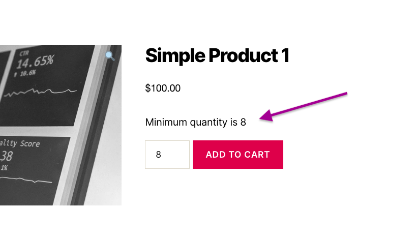 • The display_min_quantity_notice function is hooked to the woocommerce_before_single_product action, ensuring it runs on the single product page.