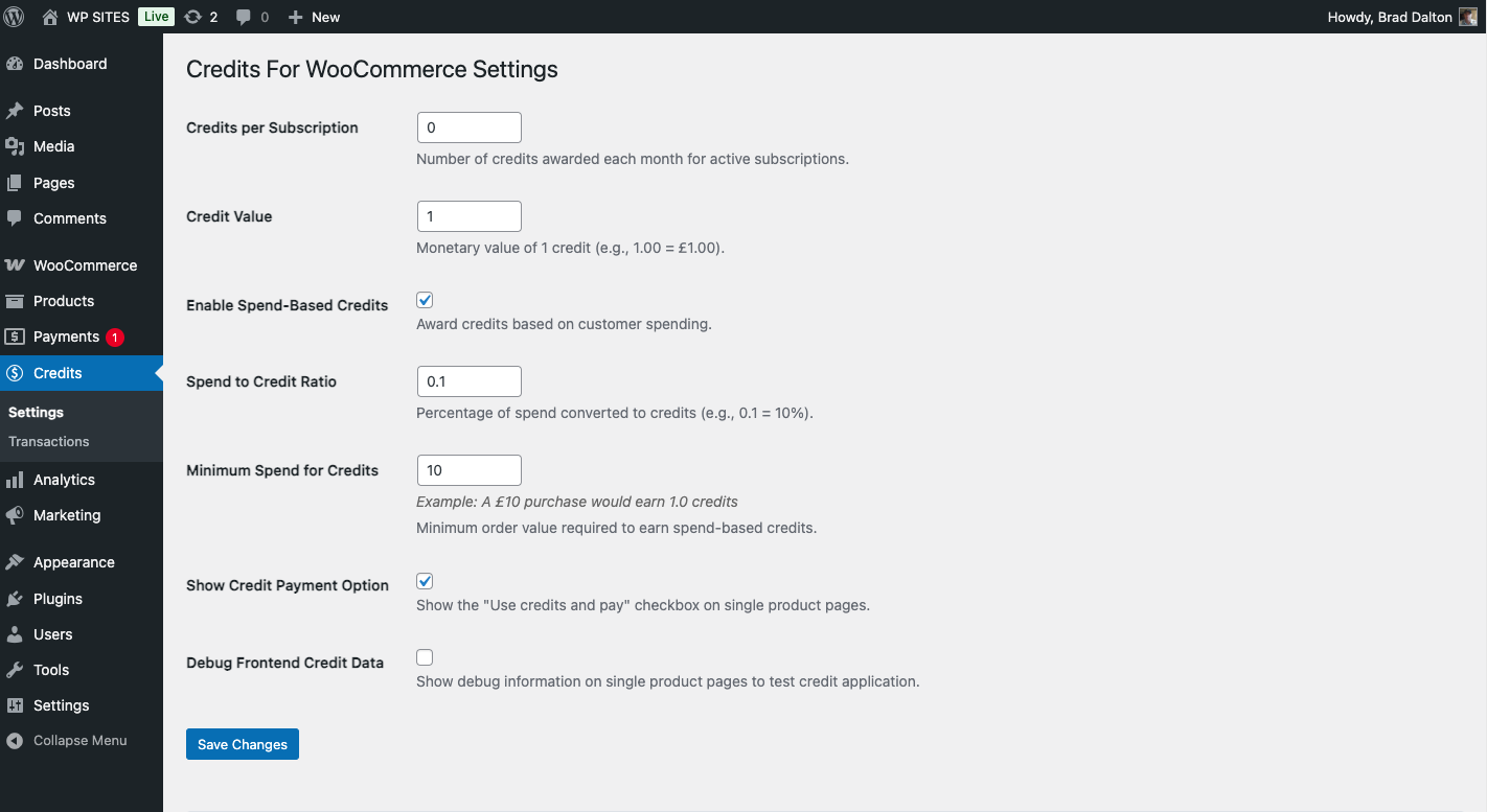 Once you have the plugin installed and activated, go to your WordPress dashboard and click the Credits menu item and the Settings sub menu item.