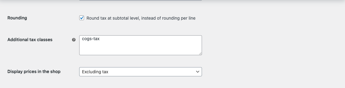 - In the “Add tax class” field, type a name (e.g., “cogs-tax”)