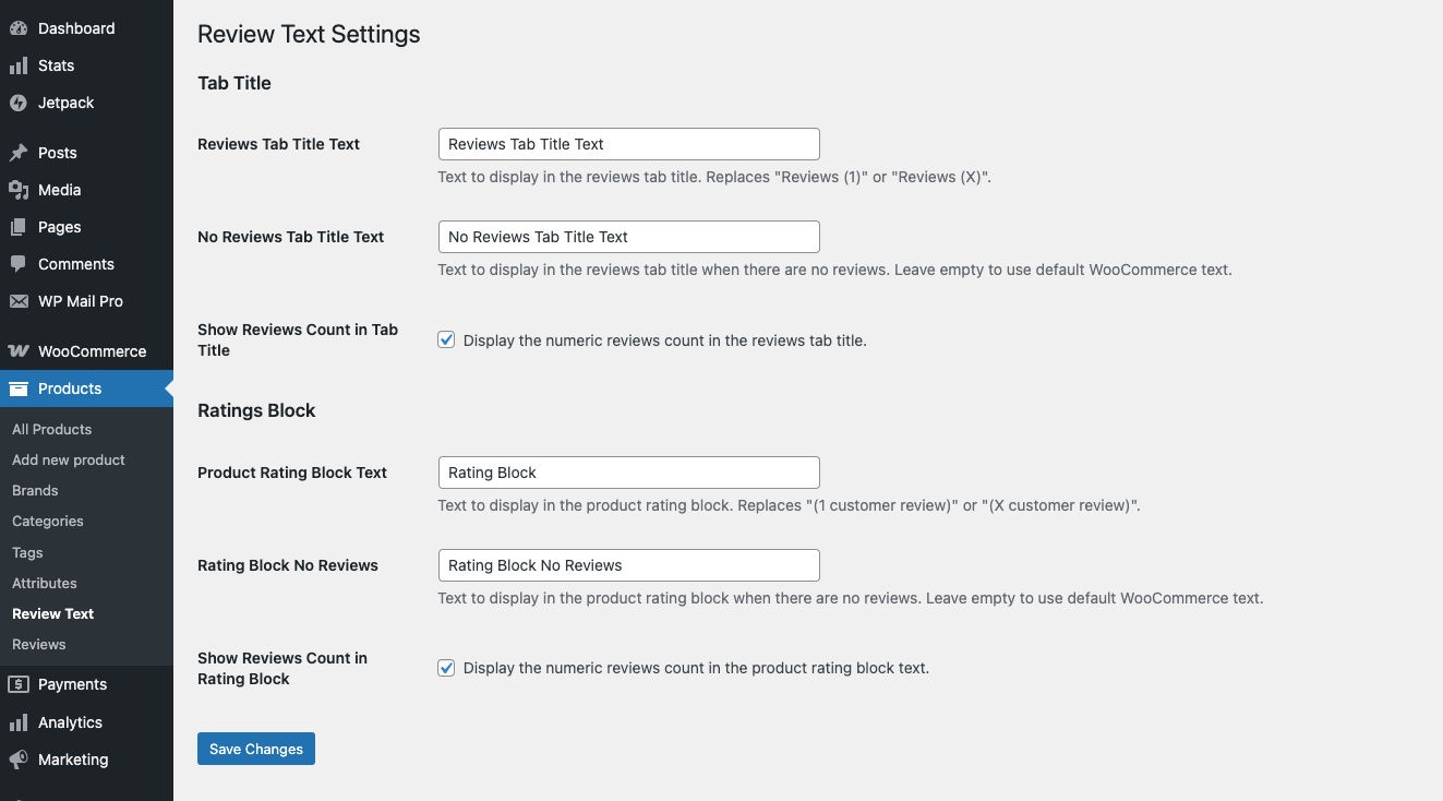 Navigate to Products > Review Text in your WordPress admin dashboard.
