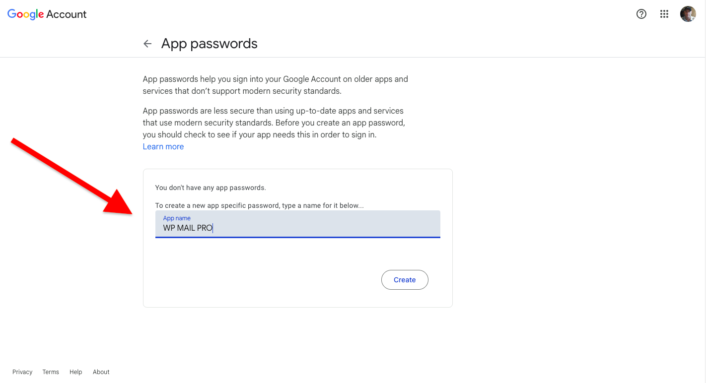 - Use this direct link https://myaccount.google.com/apppasswords to sign in to your Google account and be redirected to your App passwords page.