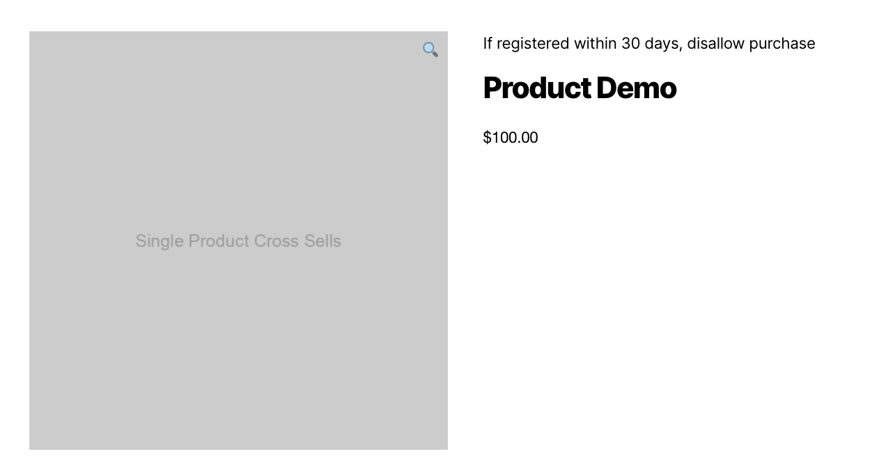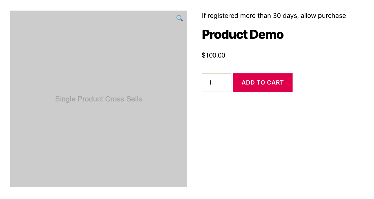 In this example, if the user has been registered for less than 1 month, they can’t add the product to cart and checkout.