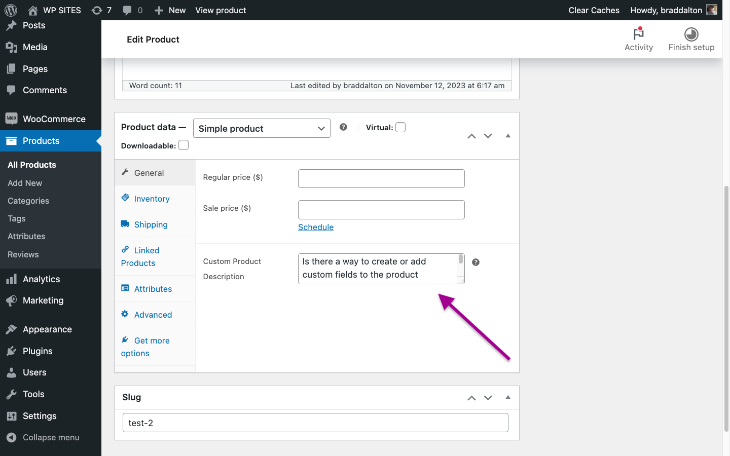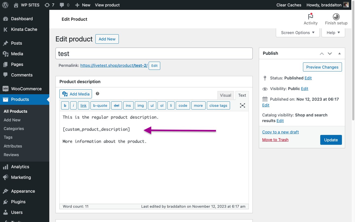 Here’s 2 screenshots showing how to use the custom field and shortcode on your single product page.
