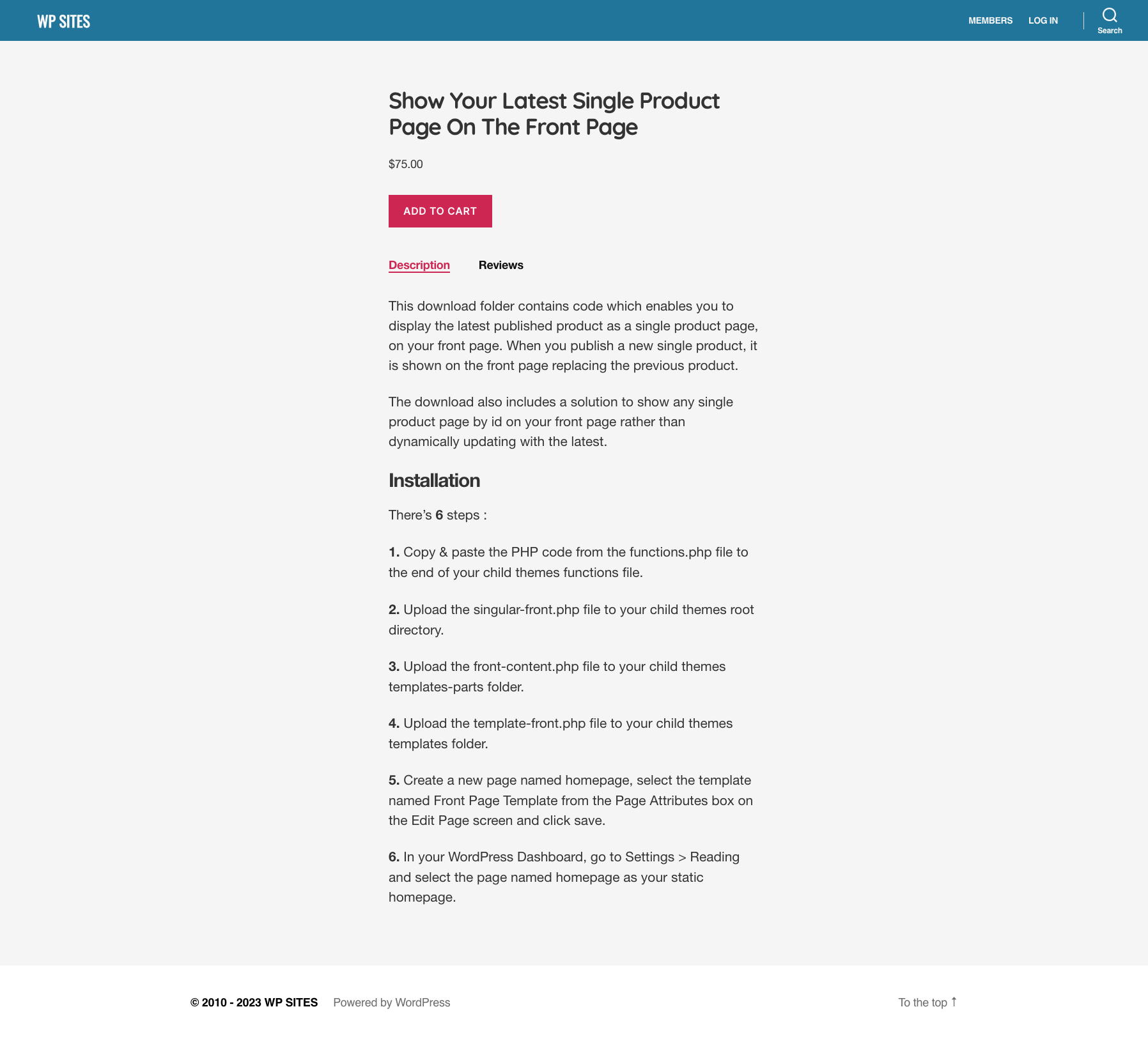 The download also includes a solution to show any single product page by id on your front page rather than dynamically updating with the latest.